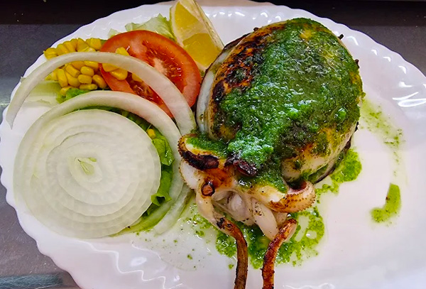 Su especialidad es pollos y carnes a la brasa, pero en su carta variada ofrece opciones para todos los gustos, desde ensaladas frescas hasta carne de cabra, chocos a la plancha y postres caseros.