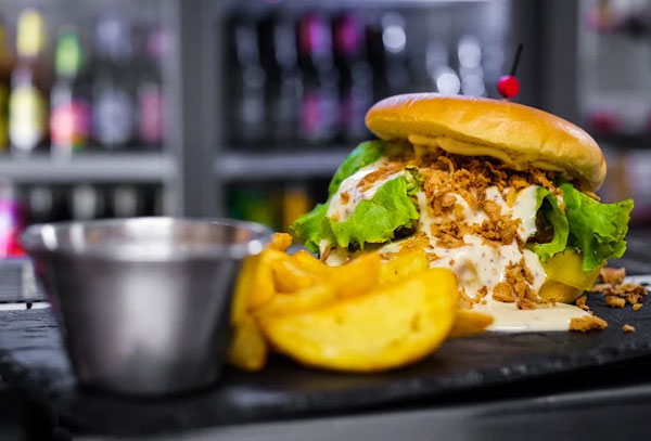 Las hamburguesas son otra especialidad, carne jugosa, pan tierno y combinaciones irresistibles, todo ello unido a nuestra variada carta de bocadillos, papas locas, arepas…